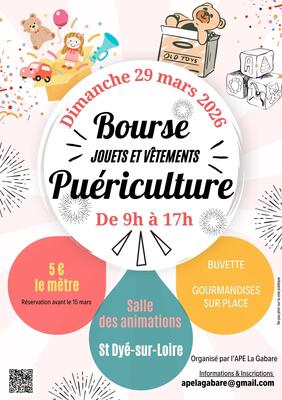 L'association des parents d’élèves ape de l'école la gabare organise une bourse puériculture dans la salle d'animation de saint dyé sur loire.