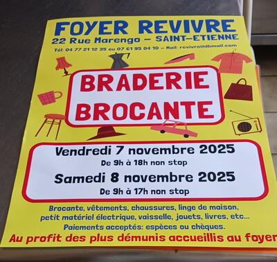 Brocante au profit des personnes en grande précarité accueillis au sein du foyer pour partager des repas chauds, recevoir des colis et possibilité d' accès aux vestiaire.