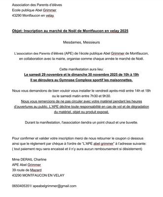 Marché de noël organisé par l'association de parents d'élèves de l'école publique de montfaucon en velay