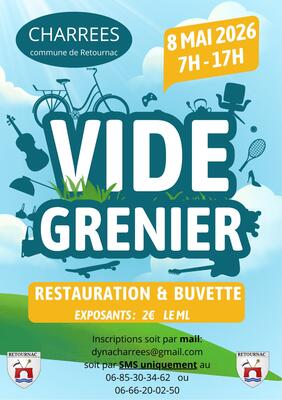 Pour la 2 ème année consécutive le village de charrées et l'association dyna ' charrées vous accueille de 7h à 17 h pour son vide grenier. Venez nombreux