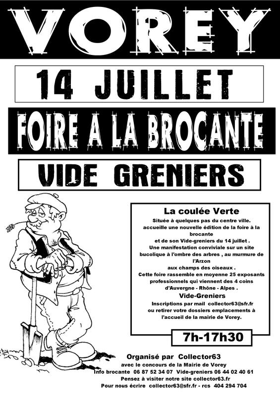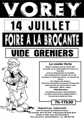 Brocante du 14 juillet cette brocante rassemble en moyenne 80 exposants "la coulée verte" qui viennent des 4 coins d'auvergne-rhône-alpes vide-greniers d'été habitants et exposants particuliers professionnels bienvenue dossiers inscriptions a retirer en mairie ou par mail