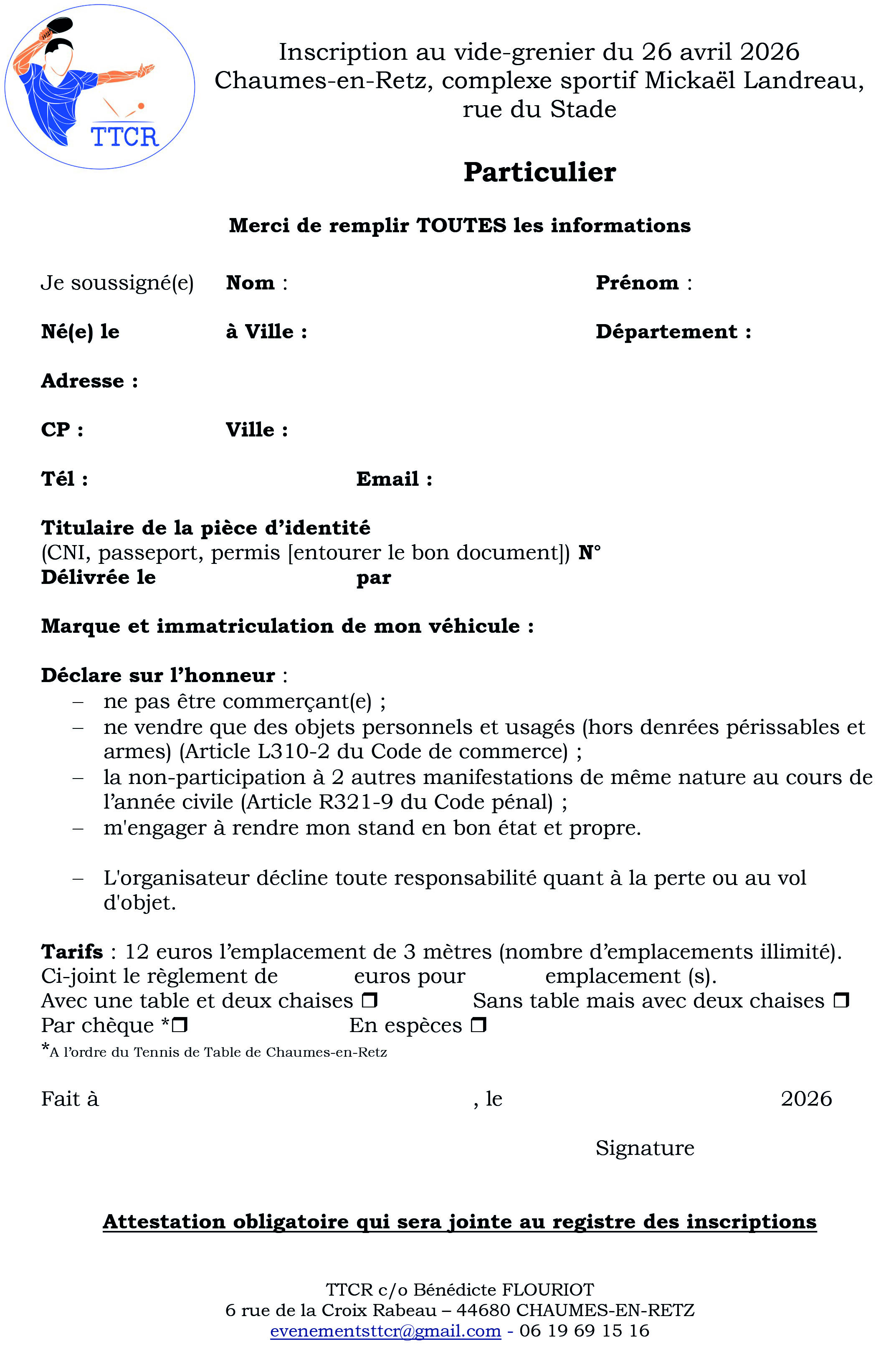 Vide-greniers du club de tennis de table