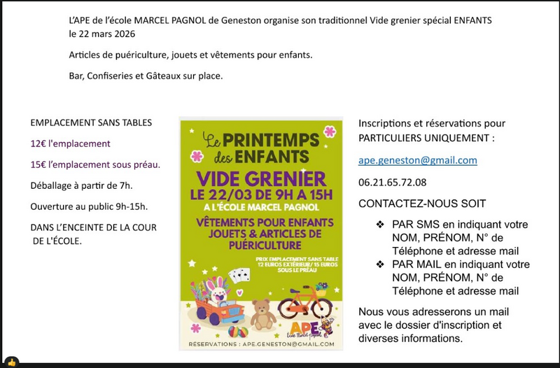 Vide grenier - printemps des enfants