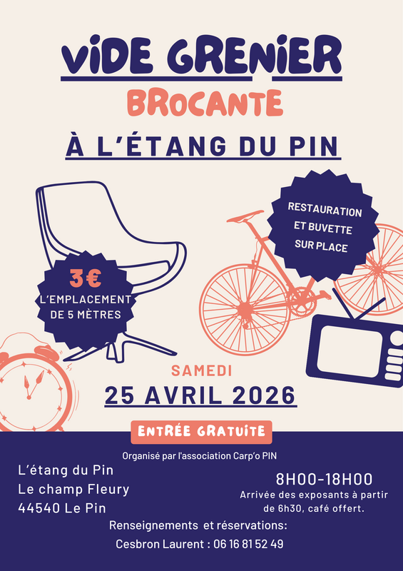 A l'occasion de notre enduro pêche à la carpe no kill, nous organisons un vide grenier/brocante.