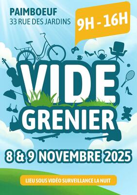 J'organise un vide garage/grenier le samedi 8 et dimanche 9 novembre 2025 de 9h à 16h. Abrité sous des tonnelles. ????