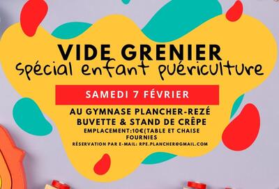 L’association des parents d’élèves de l’école plancher organise son 5ème vide grenier sur le thème de l’enfance (vêtements d’enfants, jeux, livres, matériel de puériculture…).