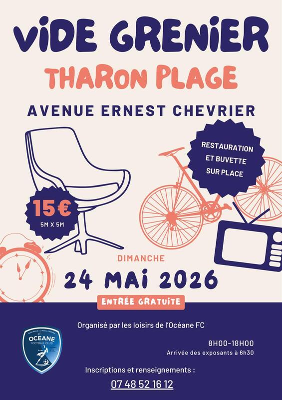 Ne manquez pas notre vide-grenier convivial organisé par les loisirs de foot de l'océane fc, sur la place du marché de tharon-plage, à seulement 500 mètres de la mer !