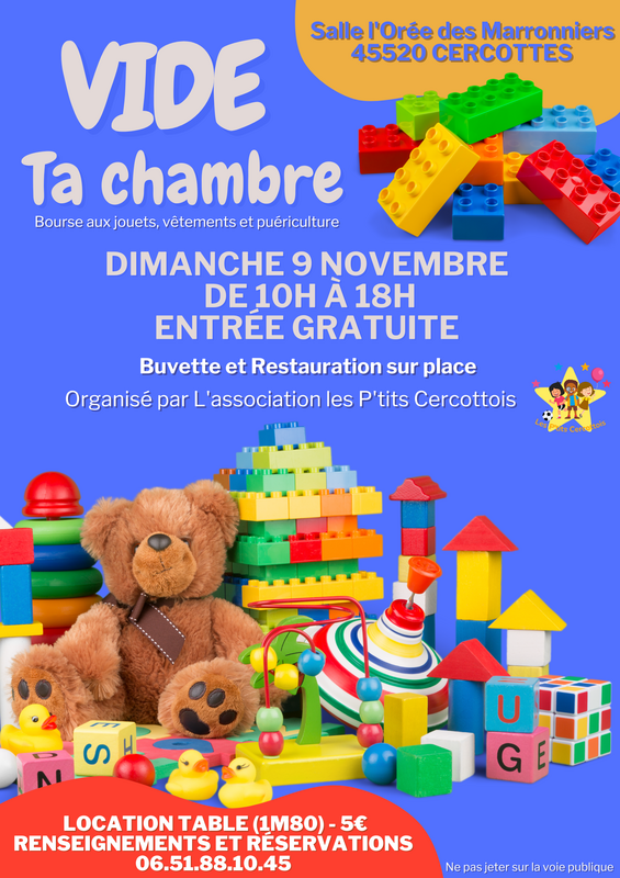 L’association les p’tits cercottois organise son vide ta chambre le dimanche 9 novembre à la salle l'orée des marronniers à cercottes.