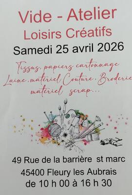 Vide atelier créatif. Vous pourrez retrouver tout le nécessaire pour réaliser vos différents loisirs créatifs, tissus, papier, tampons, dies pour scrapbooking, matériel couture, broderie, livre , magazines couture, papiers pour cartonnage.