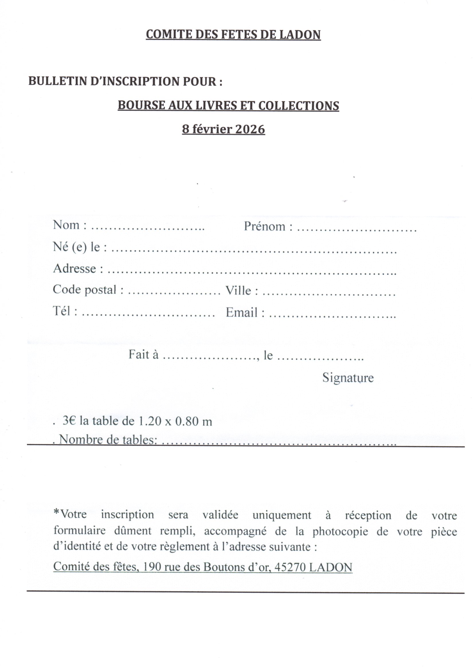 Le dimanche 8 février 2026, le comité des fêtes de ladon organise sa bourse aux livres et collections à la salle polyvalente yves garré de 8h00 à 18h00