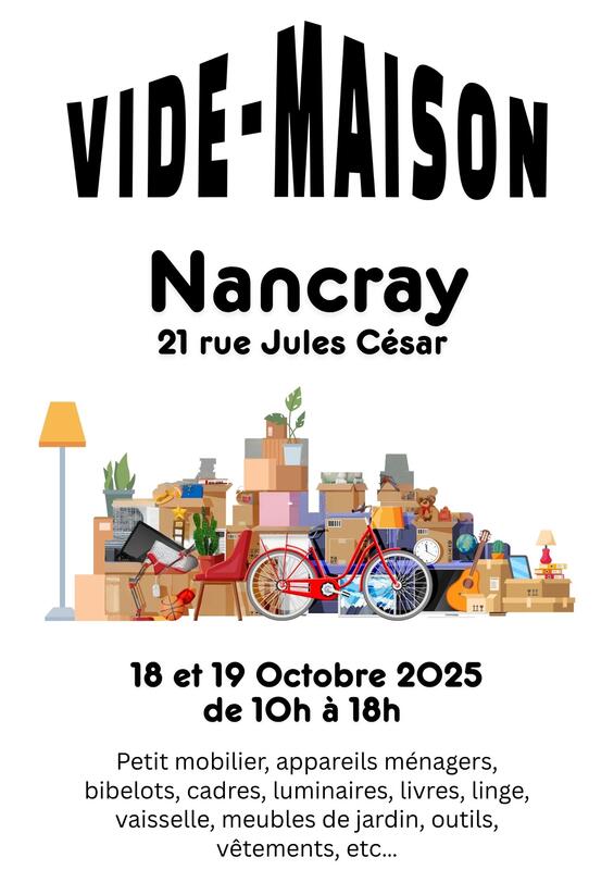 Grand vide maison – large choix d’articles - vaisselle, ustensiles de cuisine, appareils ménagers (micro-ondes, machine à café, sorbetière), petits meubles (tables, chaises, commodes, lit enfant), décoration maison (lampes, luminaires, cadres, bibelots), linge de maison, meubles de jardin, outils, livres, vêtements.