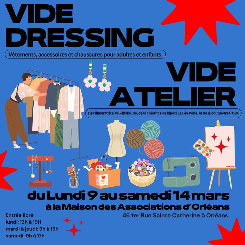 Les créatrices milkshake cie (illustratrice), la fée perle (créatrice de bijoux) et pavau (couturière et créatrice textile) organisent, pour la deuxième année consécutive, leur vide dressing et vide atelier au cœur d'orléans, à la maison des associations.