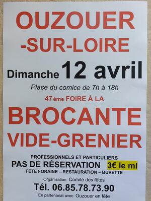 47-ème foire à la brocante et vide-greniers, place du comice d'ouzouer sur loire (45570).