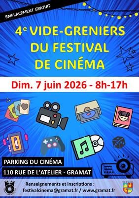 Participez à la média’broc du festival cinéma de gramat ! Dans le cadre de la 5ᵉ édition du festival cinéma, la ville de gramat organise une grande brocante sur le thème du multimédia ! Dimanche 7 juin 2026 de 8h00 à 17h00 parking du cinéma l’atelier à gramat la média’broc (brocante, bourse d’échanges, vide greniers) est entièrement gratuite et ouverte à toutes et à tous, sans limite d’âge, particuliers comme professionnels. Vous souhaitez vendre, échanger ou partager votre passion ? C’est le moment idéal pour donner une seconde vie à vos trésors multimédias ! Sont notamment autorisés : matériel photo et caméras (hors téléphones et smartphones) matériel de projection et projecteurs (8 mm à 70 mm) téléviseurs, vidéoprojecteurs et lecteurs vidéo (vhs, dvd, blu-ray, laser-disc…) films tous formats (dvd, blu-ray, uhd 4k, vhs, 8 mm, 16 mm…) matériel audio (platines vinyles, chaînes hi-fi, walkman, cd, etc.) vinyles, cd, cassettes audios livres, bd, mangas objets et souvenirs liés au cinéma (affiches, figurines, goodies…) consoles et jeux vidéo, anciens et récents (atari, sega, nintendo, playstation, xbox…) que vous soyez collectionneur, passionné ou simple curieux, venez exposer et partager votre univers ! Renseignements : merci de diffuser largement l’information autour de vous ! L’équipe du festival cinéma de gramat