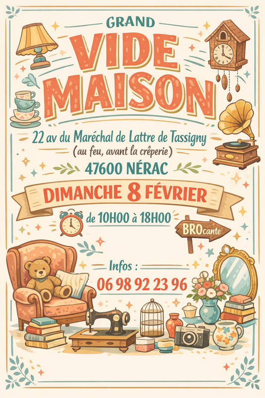 Meubles anciens, superbes services en porcelaine, plusieurs services de verres en cristal, bibelots d'artistes , tableaux, livres anciens et modernes, bronze, cuivre, étain, petits électroménagers, disques, vêtements g tailles ect....