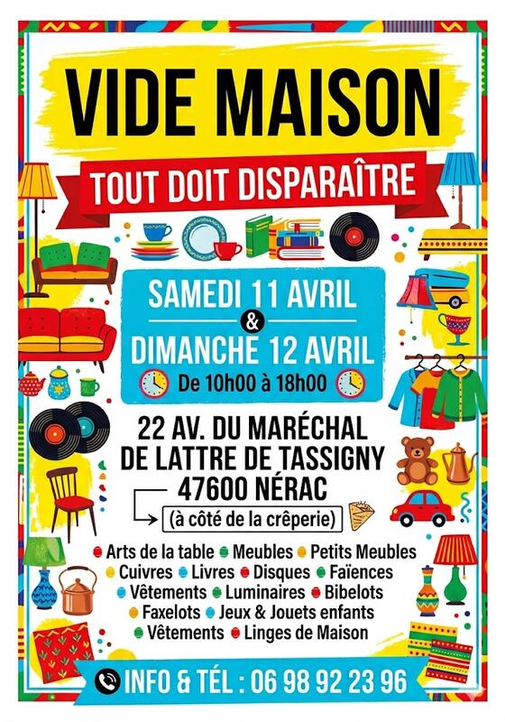 Meubles divers, vaisselle, bibelots, cristal, cuivres, arts de la table, machine à coudre singer, luminaires, livres anciens et modernes, disques, cd, jeux et jouets d'enfants, lecteur enregistreur cd, linge de maison, vêtements femme , vêtements homme, chaussures et plein d'autres articles à découvrir ...... Suite à un départ en maison de retraite, tout doit disparaître !