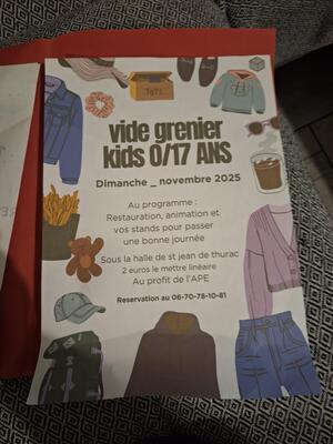 Vous avez 0.17ans venez faire votre vide grenier ! On joue à la marchande .Vous serez accompagné par vos parents .Animation petit déjeuner offert pour tout les exposants restauration sur place .Venez nombreux pour vous amusez toute la journée.
