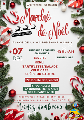 Nous vous invitons à notre marché de noël le 7 décembre de 10h à 18h sur la place de la mairie de saint maurin 47