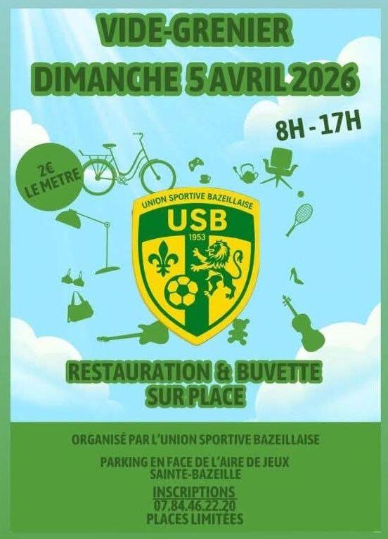 Le club de foot de st bazeille organise un vide grenier le dimanche 5avril sur le parking face a l air de jeux de st bazeille de 8h a 17h. 2€ le mètre places limitées.
