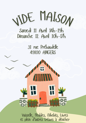Venez trouver votre bonheur à notre vide maison samedi 11 avril de 14h à 19h et dimanche 12 avril de 10h à 17h.