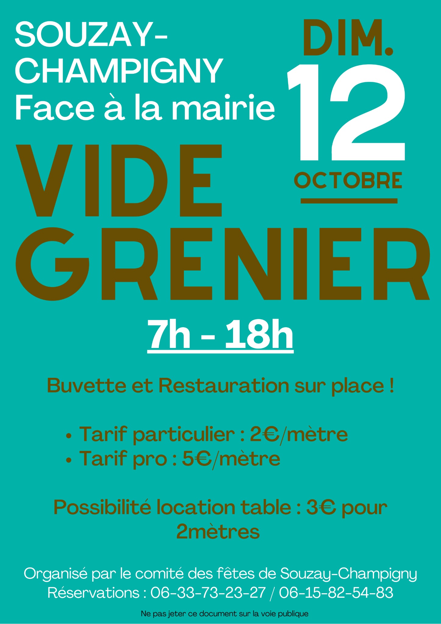 Avant dernier vide-greniers de la saison sur notre région venez nombreux le soleil est au rendez-vous ainsi que les exposants vous offrir la possibilité de venir chiner passer une agréable journée.