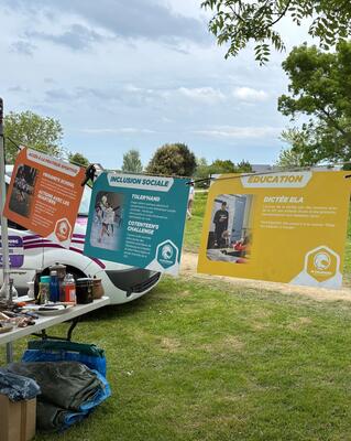 Vous trouverez à nouveau un espace exposition qui promeut et détaille les actions du fonds de dotation js solidaire. Un espace « structure gonflable » est également à prévoir.