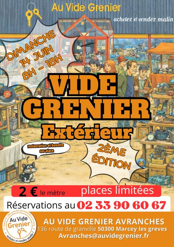 Grand vide-grenier extérieur à avranches organisé par le magasin “au vide grenier”.