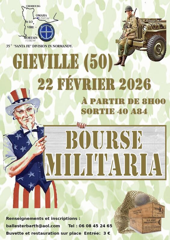 L'association 35th santé fé division in normandy, organise le 22 février prochain une bourse militaria (objets de collections...).