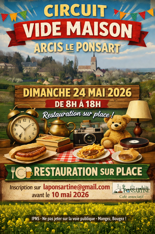 Le café associatif la ponsartine organise un circuir vide-maison dans le village. Venez profiter des trouvailles de nos exposants en découvrant ou redécouvrant arcis le ponsart