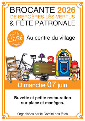 Le comité des fêtes organise la brocante avec fête patronale le dimanche 7 juin 2026.