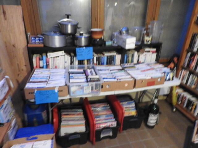 vaisselles diverses -linge de maison -vêtements - chaussures - meubles - livres -jeux sociétés - bibelots divers pièces de monnaies- cartes postales tout département- outillage de jardin- etc