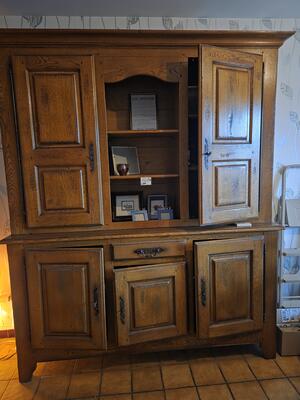Principalement meubles anciens bois (pas de type ikea) : lit 140, sommier électrique et matelas, armoire, table, chaises, table de chevet, buffet, meuble tv, canapé cuir et fauteuils, matériel de pêche, débarras de garage, vaisselle, décoration, colonne en albâtre, etc ...