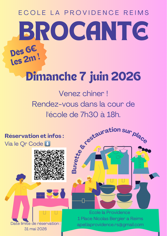 Voici le lien d'inscription : https://www.helloasso.com/associations/apel-de-l-ecole-la-providence-reims/evenements/brocante-de-l-ecole-la-providence-2026