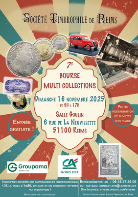 Voici venir notre 7e bourse toutes collections le dimanche 16 novembre 2025 à reims, salle goulin (6 rue de la neuvillette), de 9h à17h.