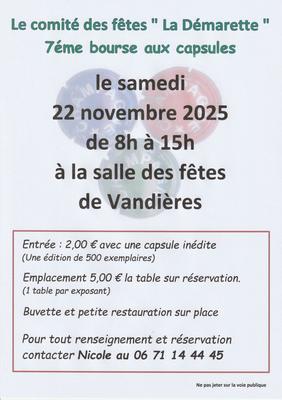 Le comité des fêtes "la demarette" organise sa 7ème bourse aux capsules