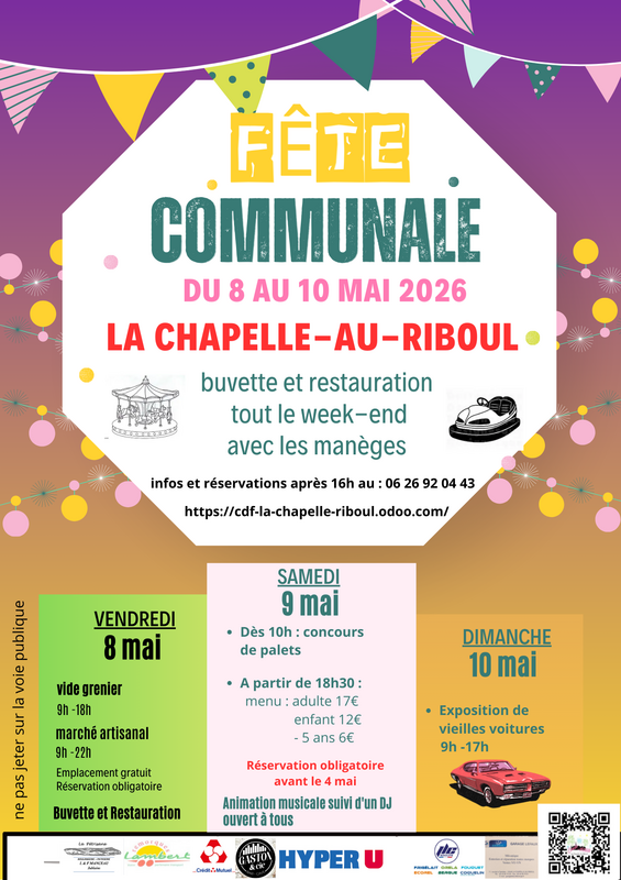 Lors de la fête communale de 3 jours, le comité des fêtes organise son vide grenier avec marché de producteurs et artisanal le vendredi 8 mai 2026. Ouvert au public à partir de 9h.
