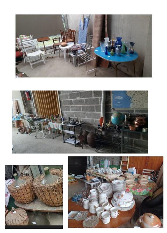 Vente suite décès ; ensemble de vaisselles, bibelots, appareils ménagers,objets anciens (dame jeanne, pots en grès lampes, étains....), appareils médical ( fauteuil roulant, rehausseur,fauteuil douche....),meubles (lits, fauteuils ,tables ...),