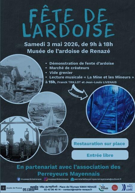 L'association les perreyeurs mayennais organise la fête de l'ardoise avec un marché de créateurs, démonstration de fente d'ardoises, lecture musicale "la mine et les mineurs", visite libre du musée, restauration sur place