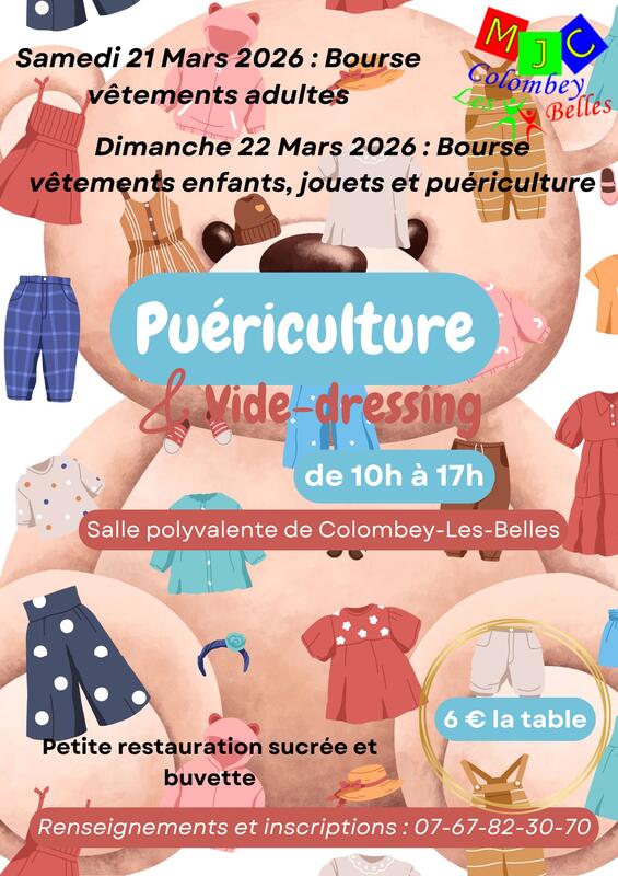 Bourse aux vêtements enfants, jouets et puériculture organisée par la mjc de colombey les belles