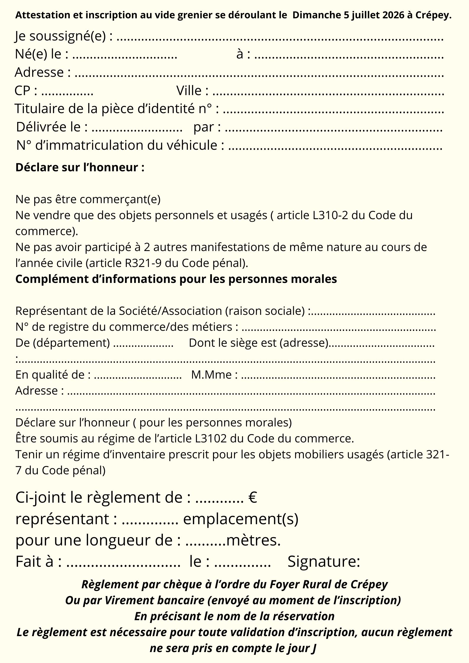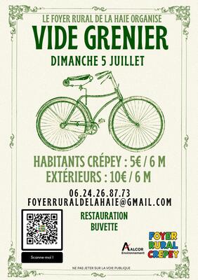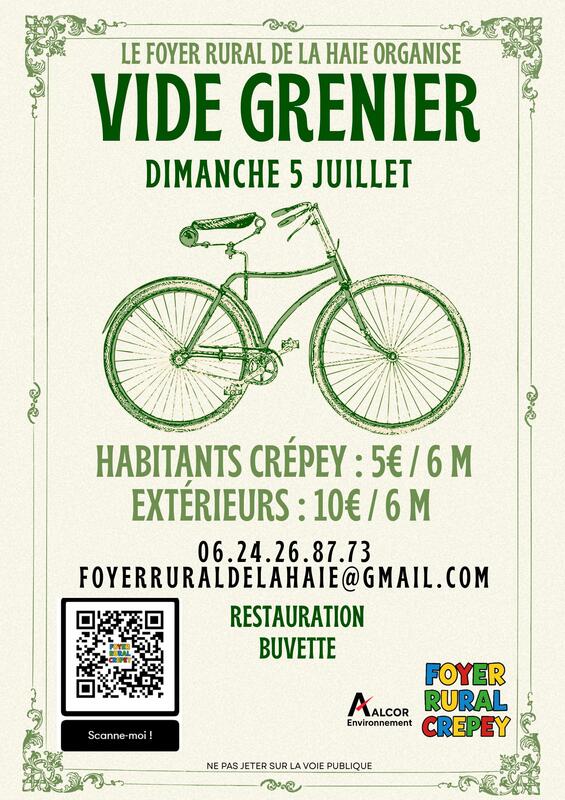 L’association du foyer rural de crépey a le plaisir de vous inviter à sa grande brocante annuelle, qui se tiendra le dimanche 5 juillet 2026 dans le village de crépey.