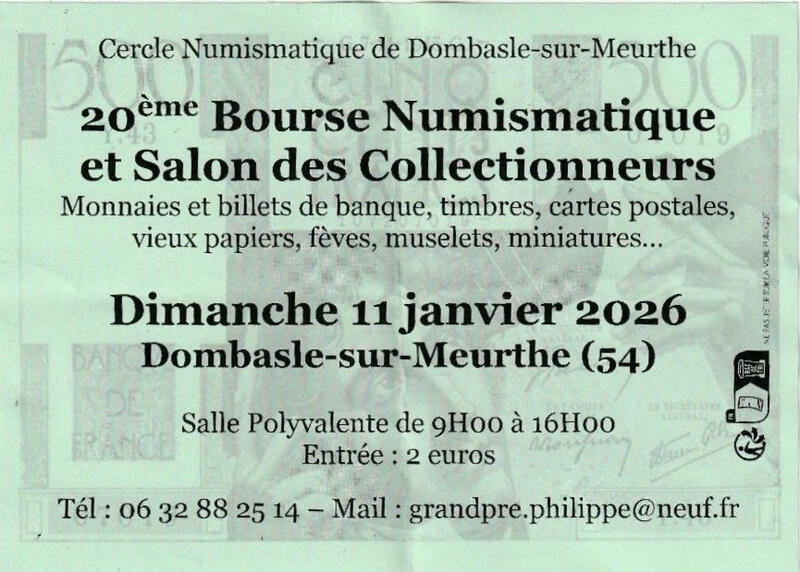 20ème bourse numismatique et salon des collectionneurs organisée par le cercle numismatique de dombasle sur meurthe.