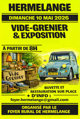 Vide grenier et exposition dans le village de hermelange à partir de 8h avec buvette et restauration sur place.