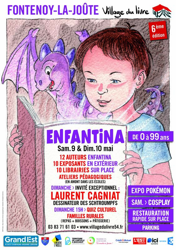 Salon enfantina tout public ! Samedi 9 & dimanche 10 mai 2025 6ème édition. De 10h à 18h les deux jours. Avec 12 auteurs professionnels de notoriété régionale ou nationale. Et 10 exposants extérieurs en plus des 10 librairies sédentaires. Ateliers pédagogiques en amont dans les écoles du secteur. En partenariat avec la librairie l’etape littéraire de raon-l’etape. Bons d’achat à gagner avec le quiz culturel le dimanche à 15h. Parking et entrée gratuits. Restauration rapide et buvette sur place. Tél. mail :