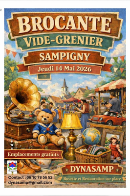L'association dynasamp organise sa traditionnelle brocante à sampigny (55300) le 14 mai prochain, jeudi de l'ascension.