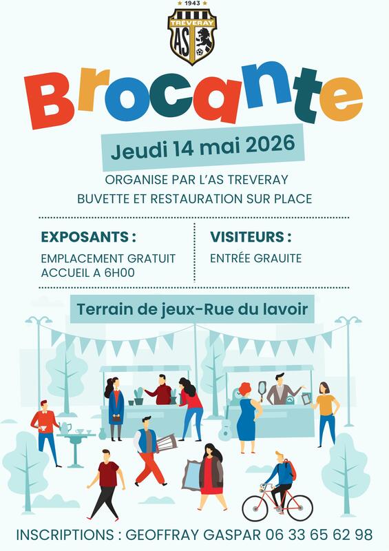 L'as tréveray organise une brocante le jeudi 14 mai sur le terrain de jeux de la commune de tréveray situé rue du moulin.