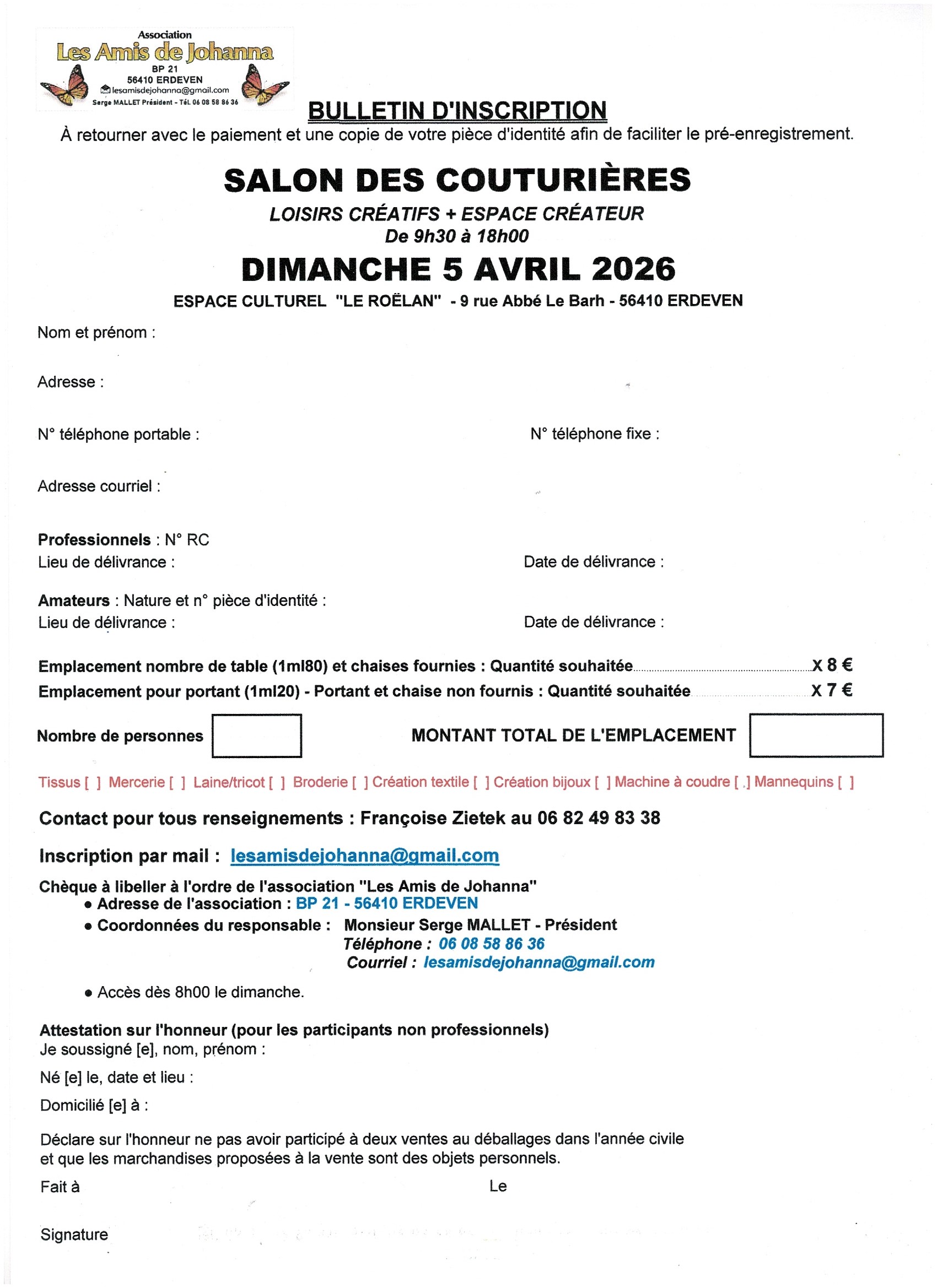 L' association les amis dejohanna organise son cinquième salon des couturières le dimanche 5 décembre 2026 de 9h30 à 18h.