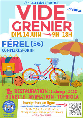 que vous soyez collectionneur ou simple promeneur, nous vous attendons nombreux dans un cadre bucolique. L'événement s'installe sur l'herbe, derrière la salle de sport de férel, de 9h à 18h. C’est l’occasion idéale pour chiner au grand air.