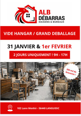 Bonjour ,alb debarras organise une vide hangar à la fin du mois janvier ,plus précisément le 31 janvier et 1 février .