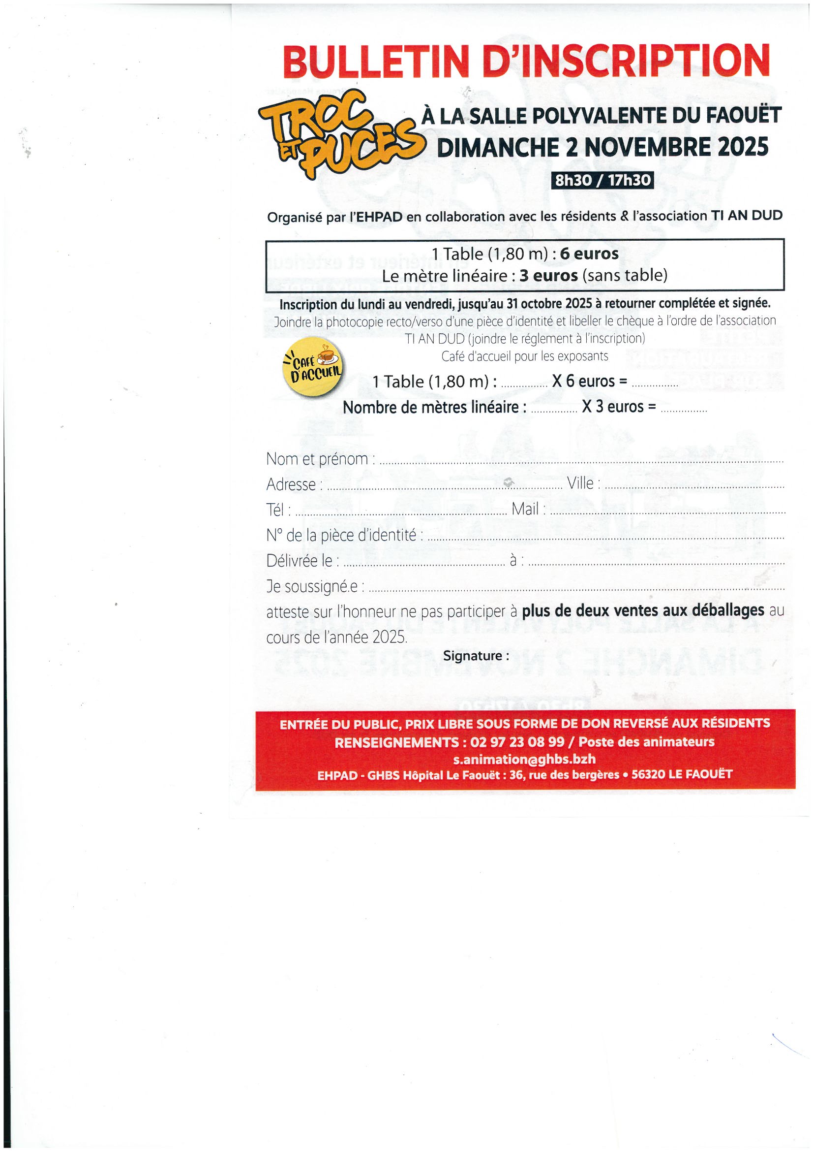 Troc et puces le dimanche 2 novembre à la salle polyvalente du faouet dans le 56 organisé par l'association ti an dud.