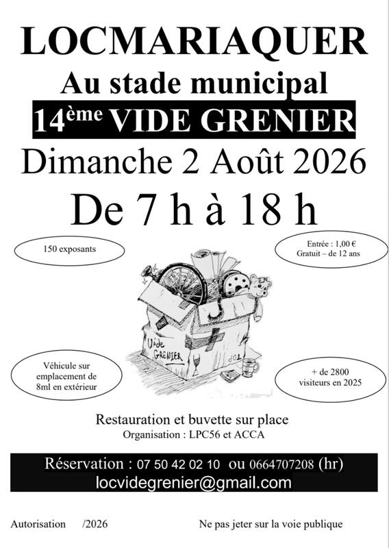 Vide grenier organisé par le lpc (club de pétanque de locmariaquer) et l'accca (association des chasseurs de locmariaquer)
